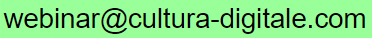 WEBINAR DI CULTURA DIGITALETITOLOCultura digitale: tecnica e fenomeni della cività dei dati PER CHI per chi di digitale sa poco o niente. E per chi sa (quasi) tutto PERCHE' perché se si vogliono mettere le basi per un uso veramente consapevole, se ambiamo a una prospettiva e una visione, indispensabili per affrontare nuovi progetti, nuove opportunità e nuove sfide, non basta usare i mezzi del digitale come "scatole nere" ignorando che cosa ci sia "dentro" o "sotto". Vedi anche l'articolo su Agenda Digitale con una traccia di percorso. COME con computer o tablet collegato a internet. O anche mediante smartphone AMMISSIONE libera e gratuita per tutti ISCRIZIONE se siete interessati scrivete a DIFFUSIONE è gradita la diffusione di questa proposta con tutti i mezzi |